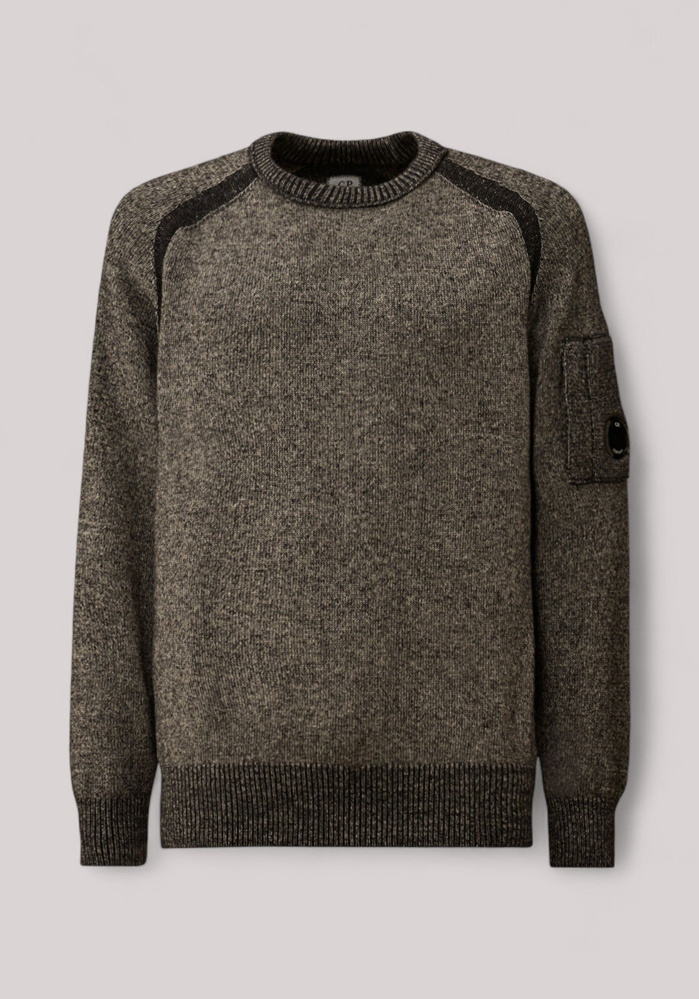 Maglione girocollo realizzato in lana vanisé con ciniglia di poliestere a contrasto. Il modello presenta l’iconica Lente di C.P. Company. Rifinita con polsini e orlo a costine. Finezza 7. Regular fit.