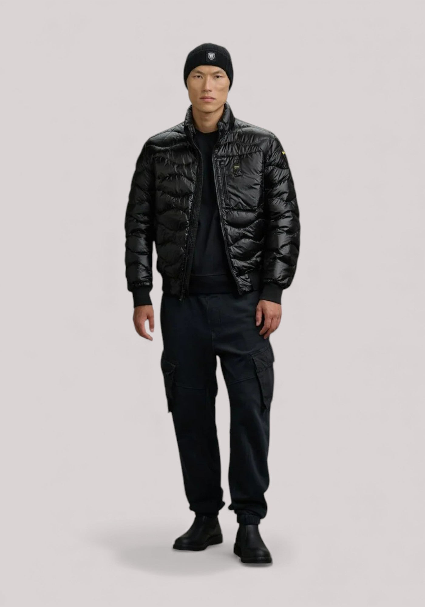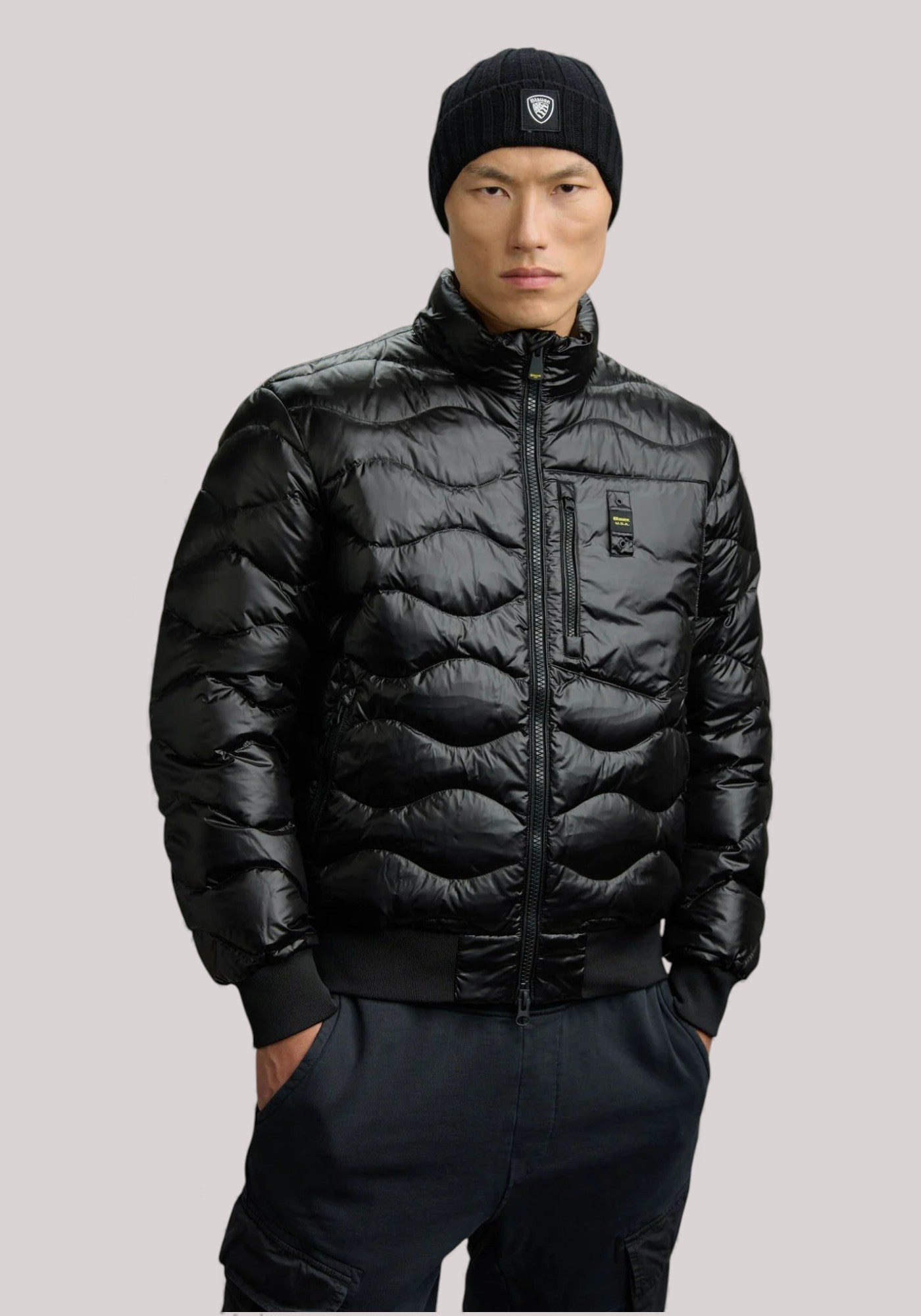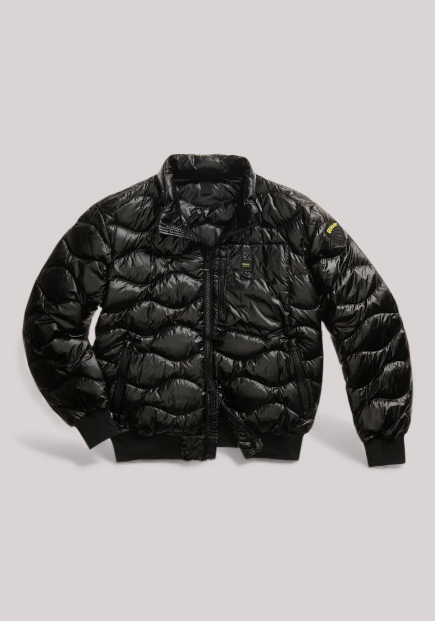 Piumino taglio bomber trapuntato ad onde orizzontali. Taschina applicata sul petto a sinistra per donare al capo iconico Blauer un tocco più comodo e funzionale. Imbottitura naturale in piuma, calda e non ingombrante; dedicato a chi vuole essere sempre alla moda in ogni occasione.
