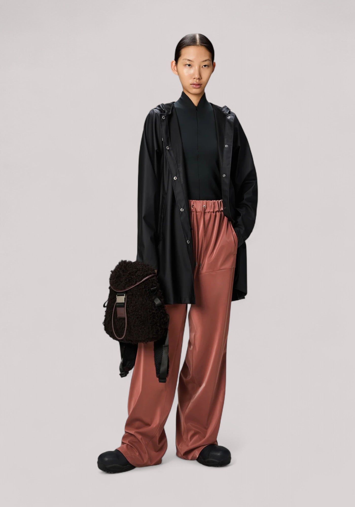 La A-Line W Jacket è realizzata nell'iconico tessuto PU di Rains e presenta cuciture nastrate, che rendono la giacca resistente all'acqua e al vento. Il finish è leggero, morbido al tocco