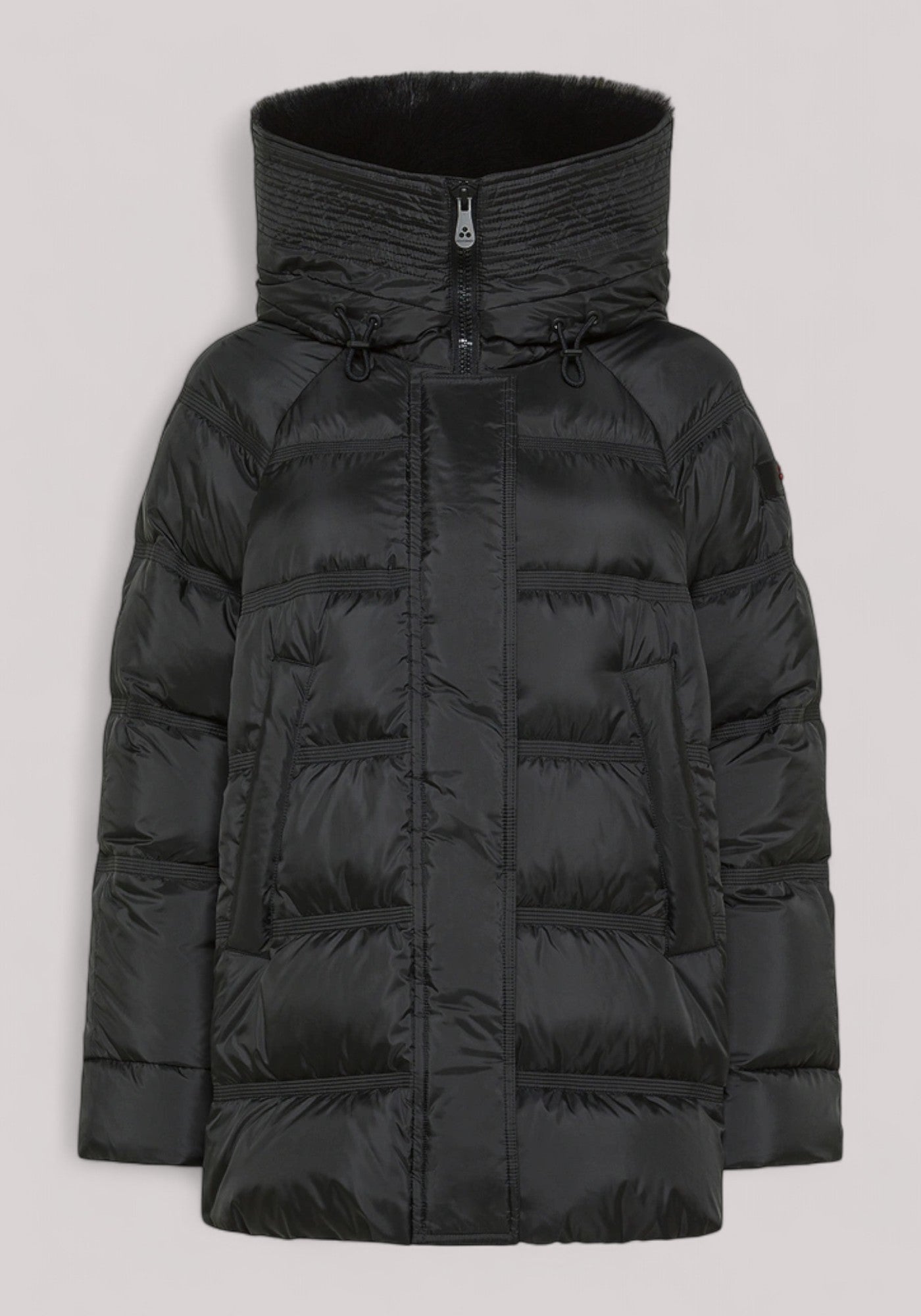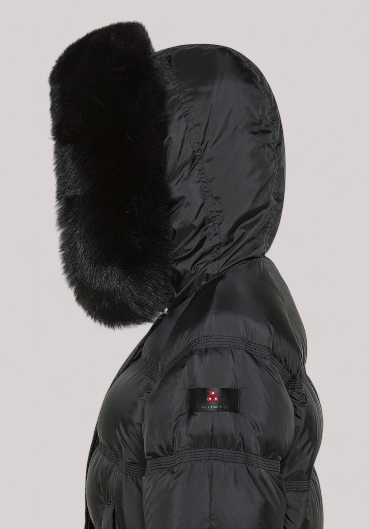 Puffer jacket ad ampie trapunte, in tessuto super-light in 100% poliestere riciclato da materiali post consumo, dalla mano morbida e dalla struttura super compatta. L’imbottitura in piuma d’oca certificata assicura calore elevato e leggerezza, mentre il trattamento idrorepellente PFC Free protegge senza l’uso di sostanze chimiche nocive. Di gusto urban sportswear, la shape ad A è regolabile grazie all’apertura delle zip laterali, mentre il cappuccio fisso è arricchito da un bordo in pelliccia di volpe staccabile in tono colore. Completano il modello le tasche a filetto, la chiusura con patta e bottoni che nasconde una zip a doppio cursore. Il modello, bestseller della collezione invernale di Peuterey, ora nei colori trend della stagione, può essere indossato anche in occasioni eleganti e mondane.