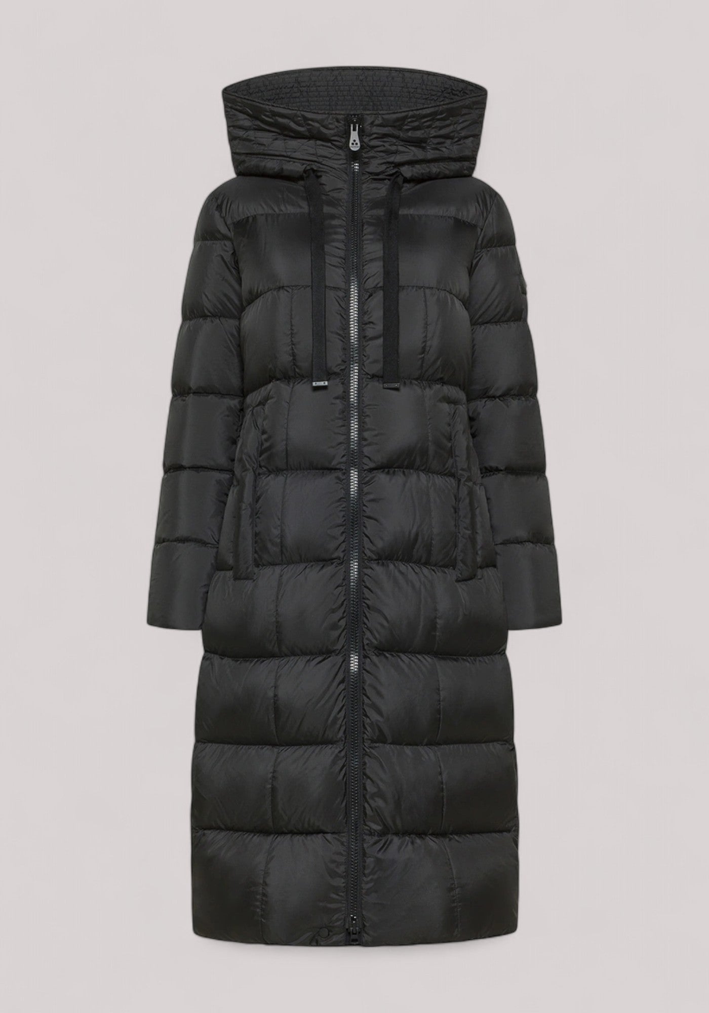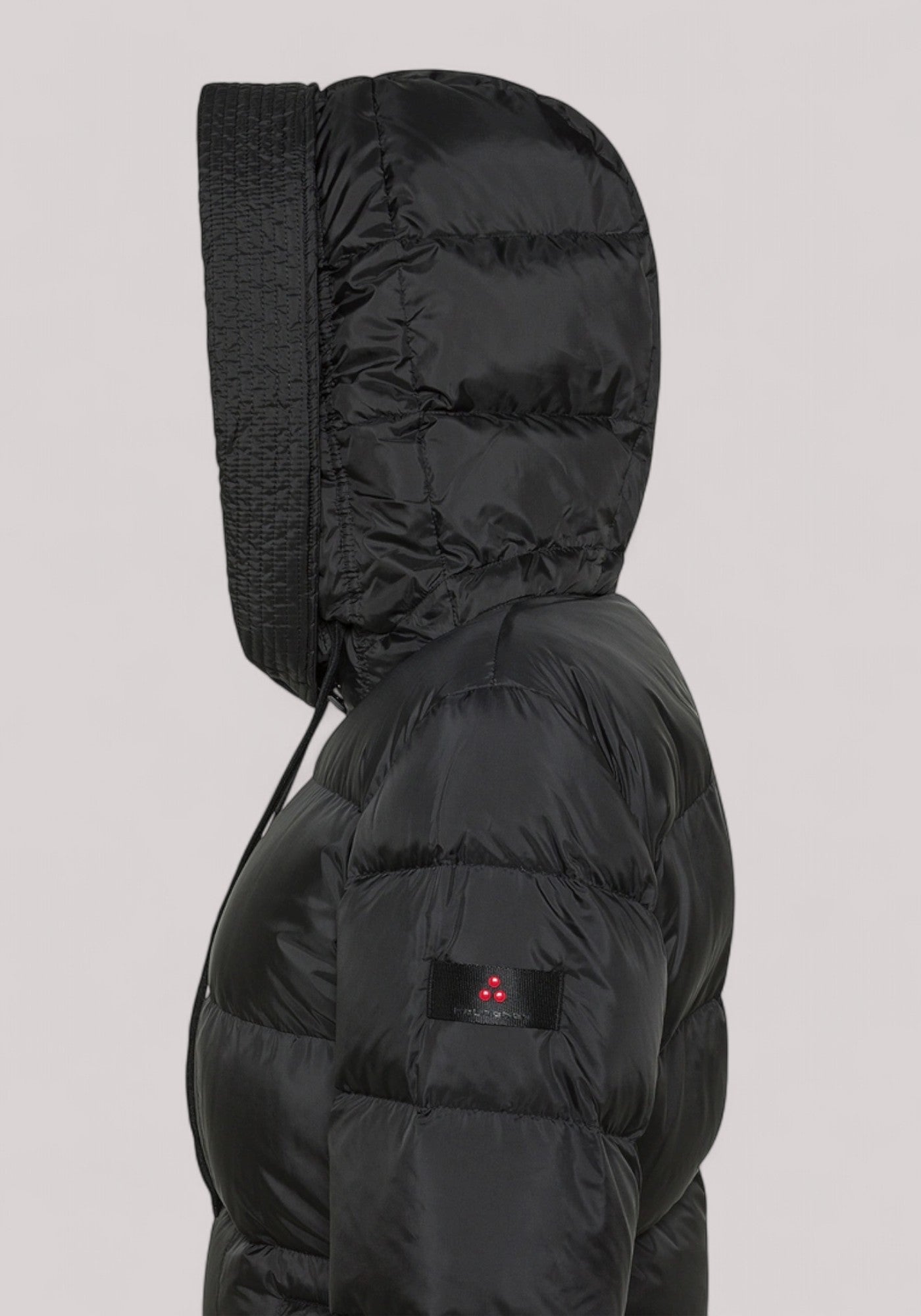 Piumino lungo ad ampie trapunte orizzontali, realizzato in tessuto super-light 100% poliestere riciclato post consumo, dalla mano morbida, finitura semi-opaca e struttura ultra compatta. L’imbottitura in piuma naturale certificata assicura un calore elevato senza appesantire. I dettagli tecnici - collo alto, cappuccio fisso regolabile, chiusura con zip a doppio cursore e ampie tasche laterali – ne esaltano la praticità. Il trattamento idrorepellente PFC Free protegge dalla pioggia leggera senza l’utilizzo di sostanze chimiche dannose. Ideale per chi apprezza la comodità senza rinunciare all’eleganza.