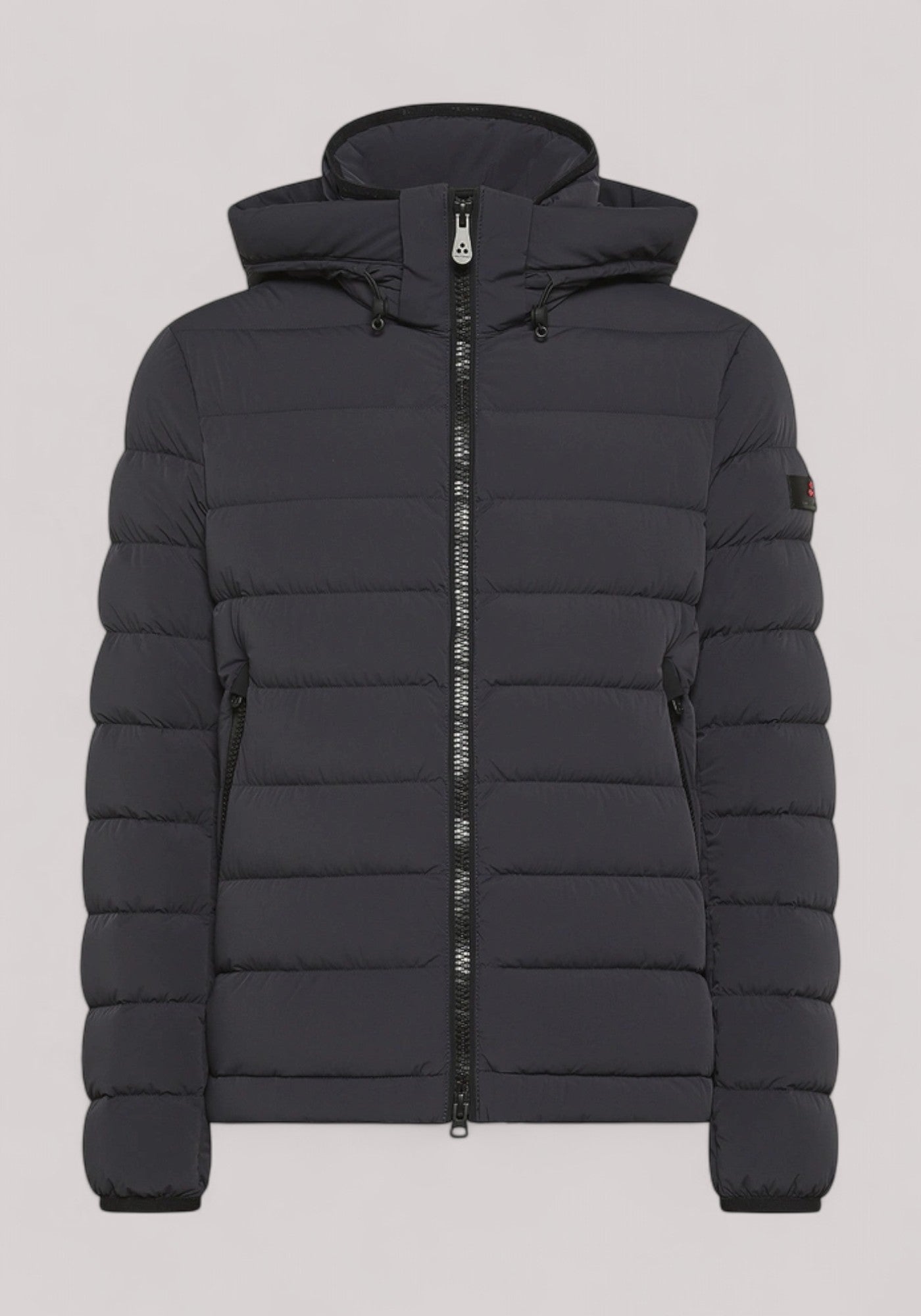 Piumino corto in tela stretch realizzata in fibra cava di nylon opaco elasticizzato, che conferisce al capo comfort, leggerezza e allo stesso tempo volume. La trapunta esalta la linea essenziale e versatile del design. L’imbottitura in piuma naturale certificata offre un calore avvolgente e garantisce allo stesso tempo traspirabilità e leggerezza. l tessuto, water repellent e down proof, è trattato con finitura idrorepellente priva di PFC (composti fluorurati), per una protezione efficace e priva di sostanze nocive. Il design è completato da un cappuccio staccabile e regolabile, da un collo in piedi e dettagli neri – zip frontale a doppio cursore, ampie tasche laterali e polsini antivento – che sottolineano il carattere active e contemporaneo, perfetto per il guardaroba quotidiano.