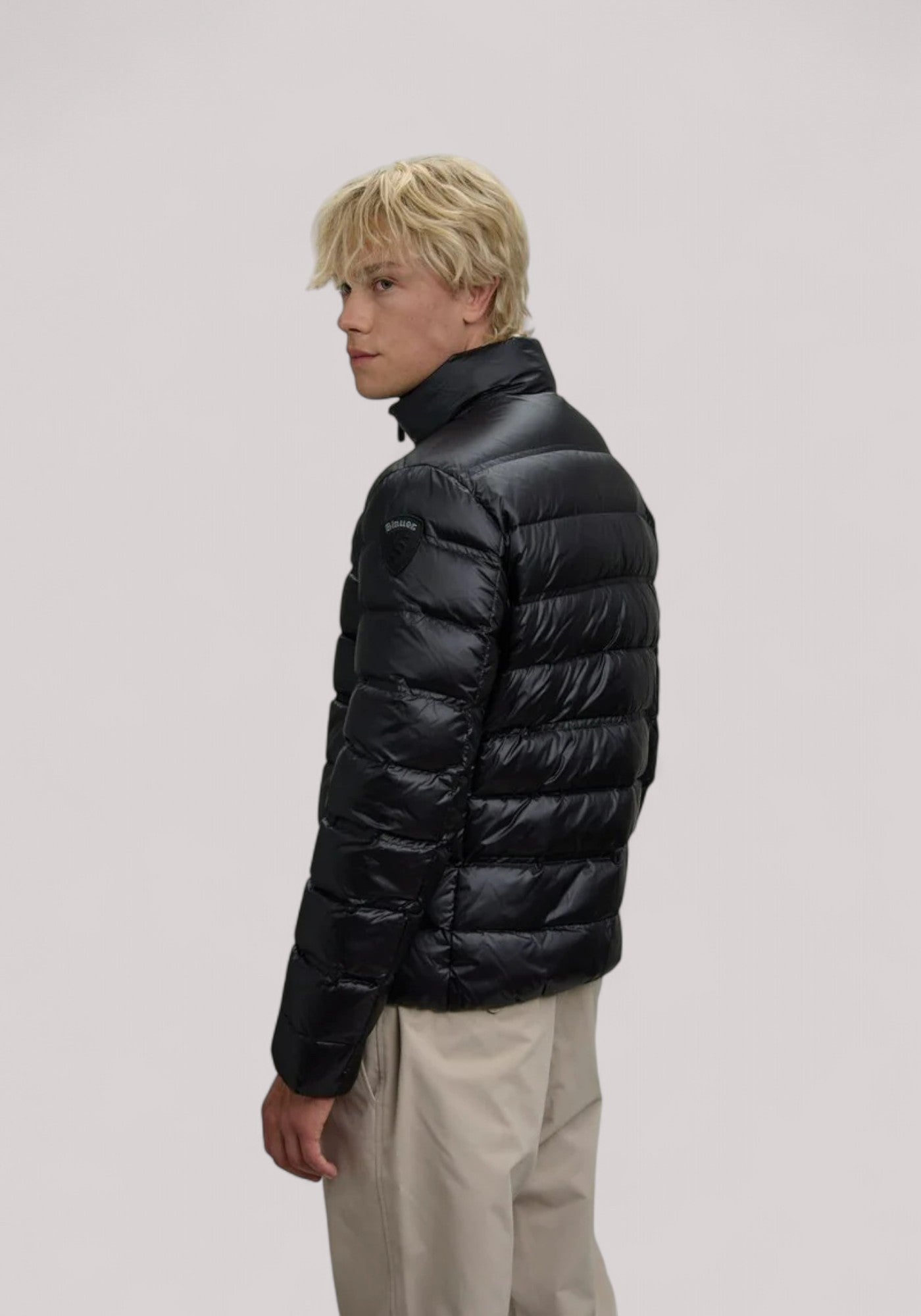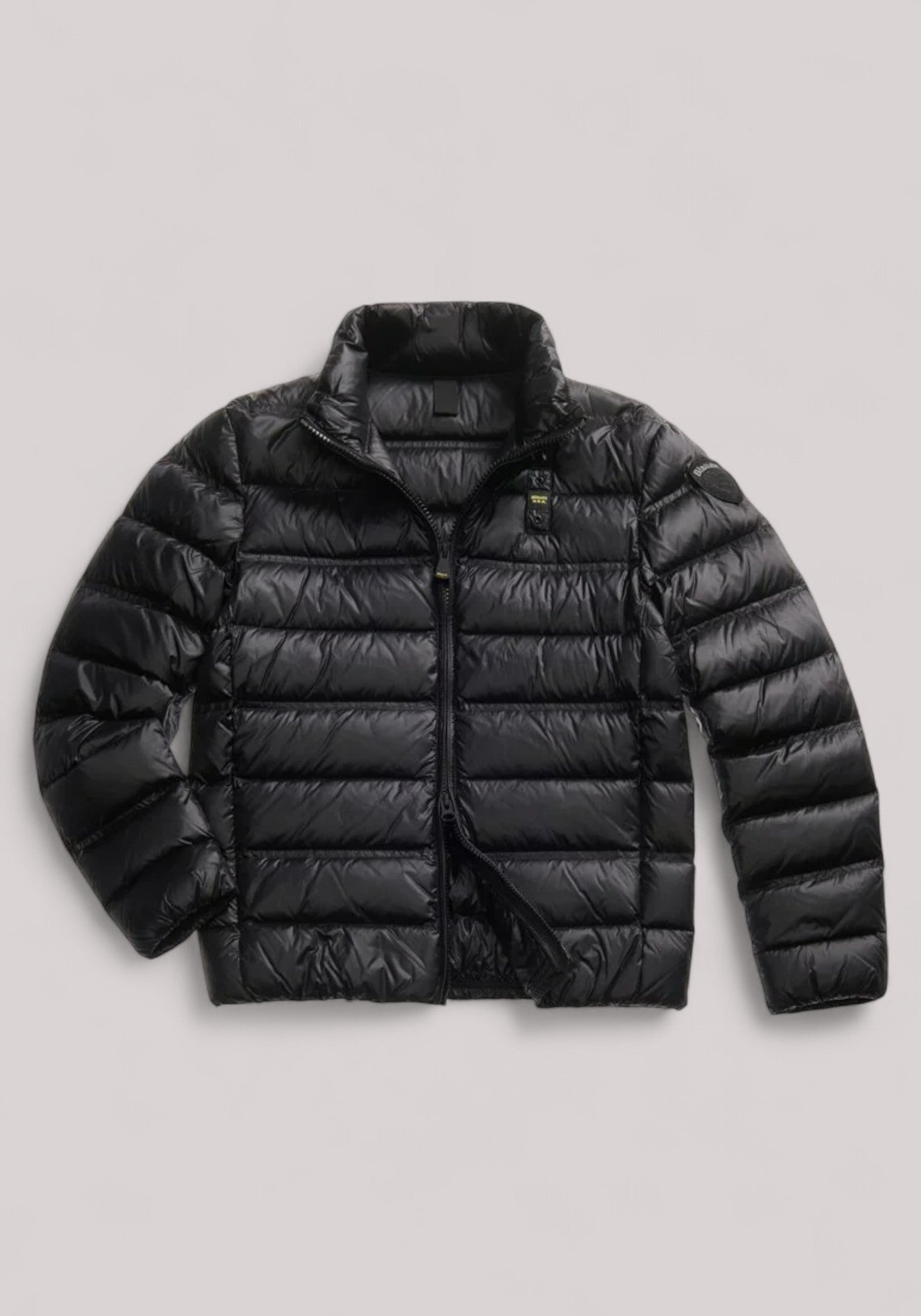 Piumino lucido trapuntato a righe orizzontali singole e doppie intervallate. Capo iconico Blauer con imbottitura naturale in piuma, calda e non ingombrante. Pensato per chi vuol essere sempre alla moda ma con uno spirito sportivo.
