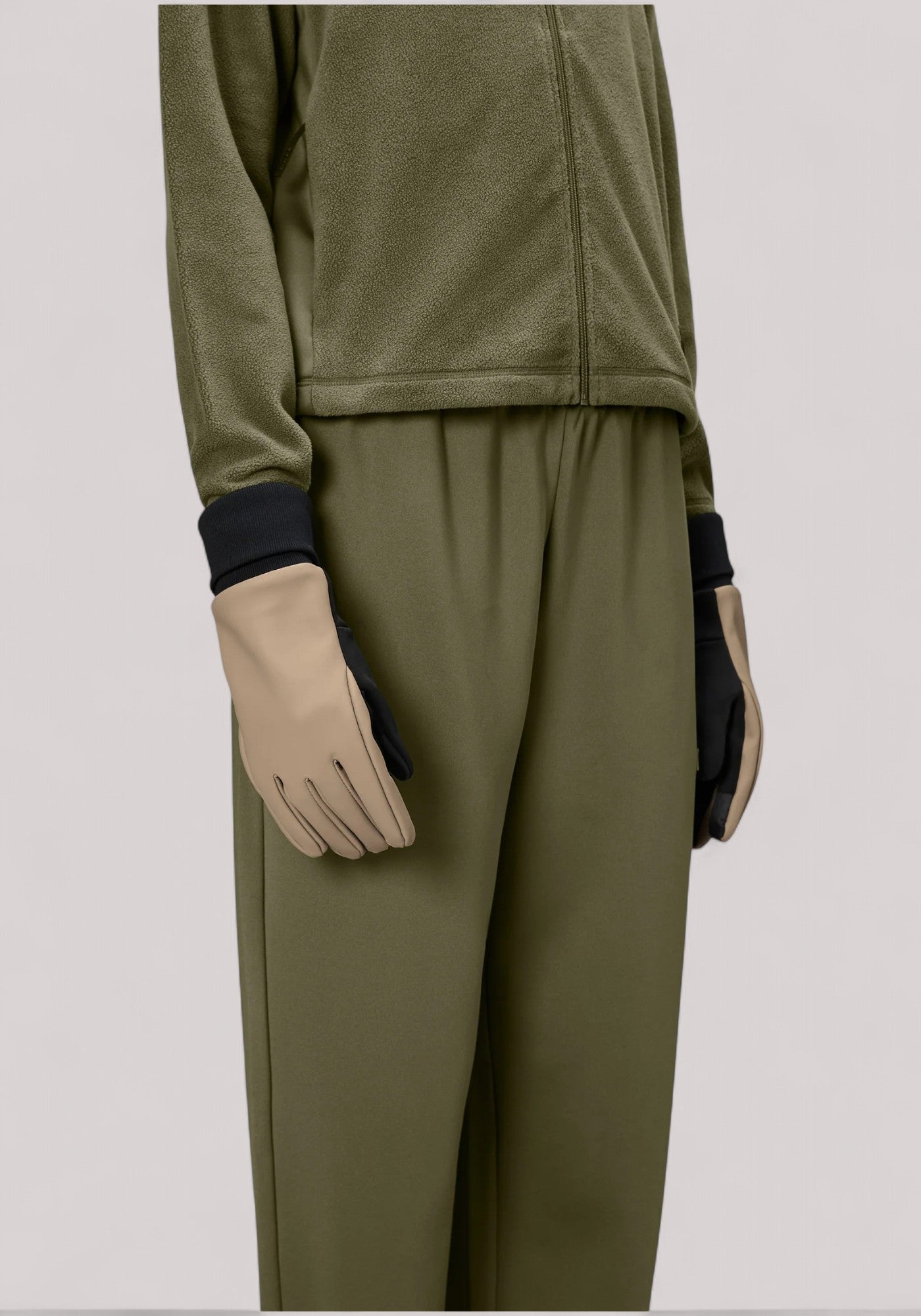 I guanti sono un accessorio isolante con un'estetica essenziale, per tenere le mani calde e asciutte nei climi freddi e piovosi.