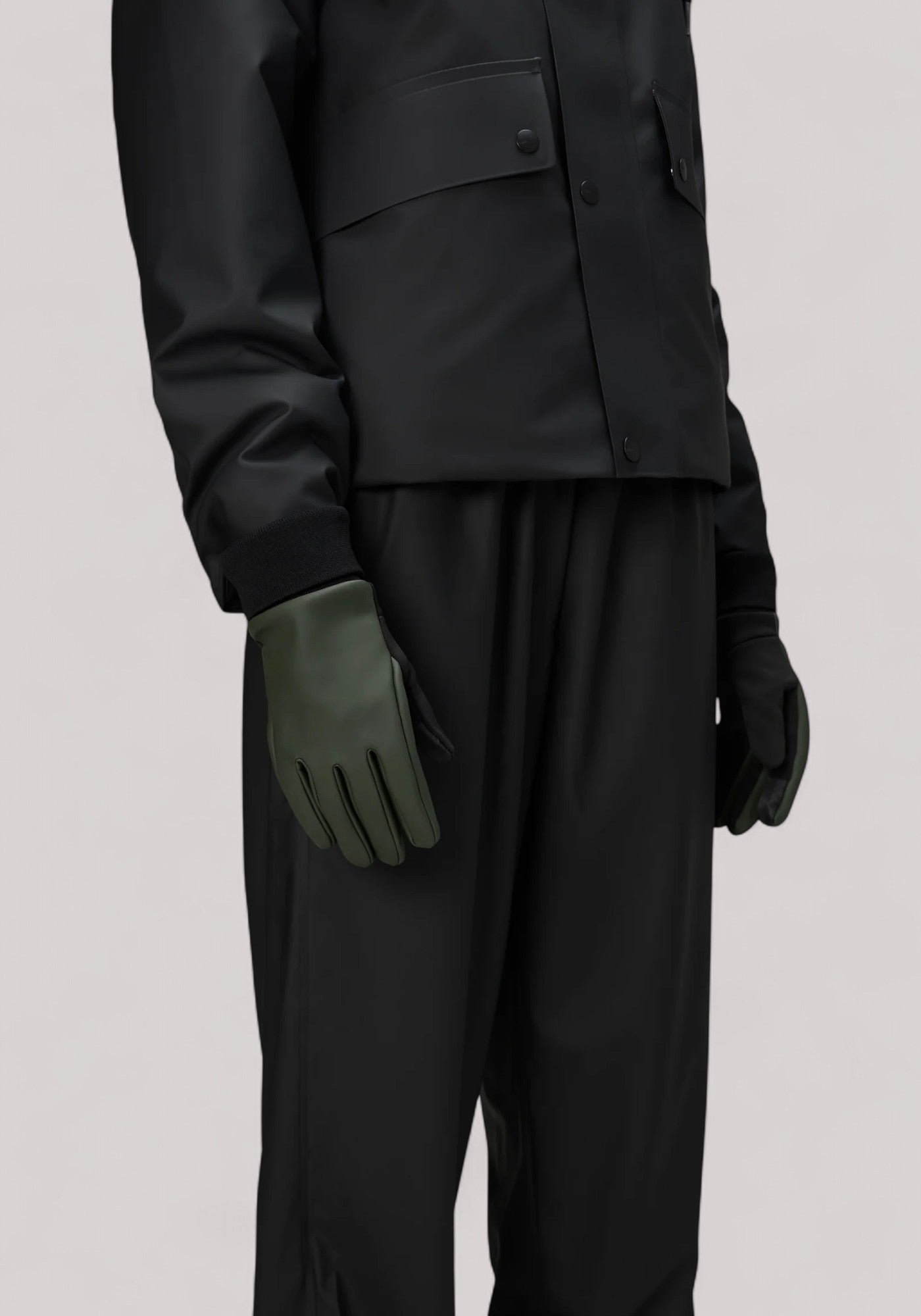 I guanti sono un accessorio isolante con un'estetica essenziale, per tenere le mani calde e asciutte nei climi freddi e piovosi.