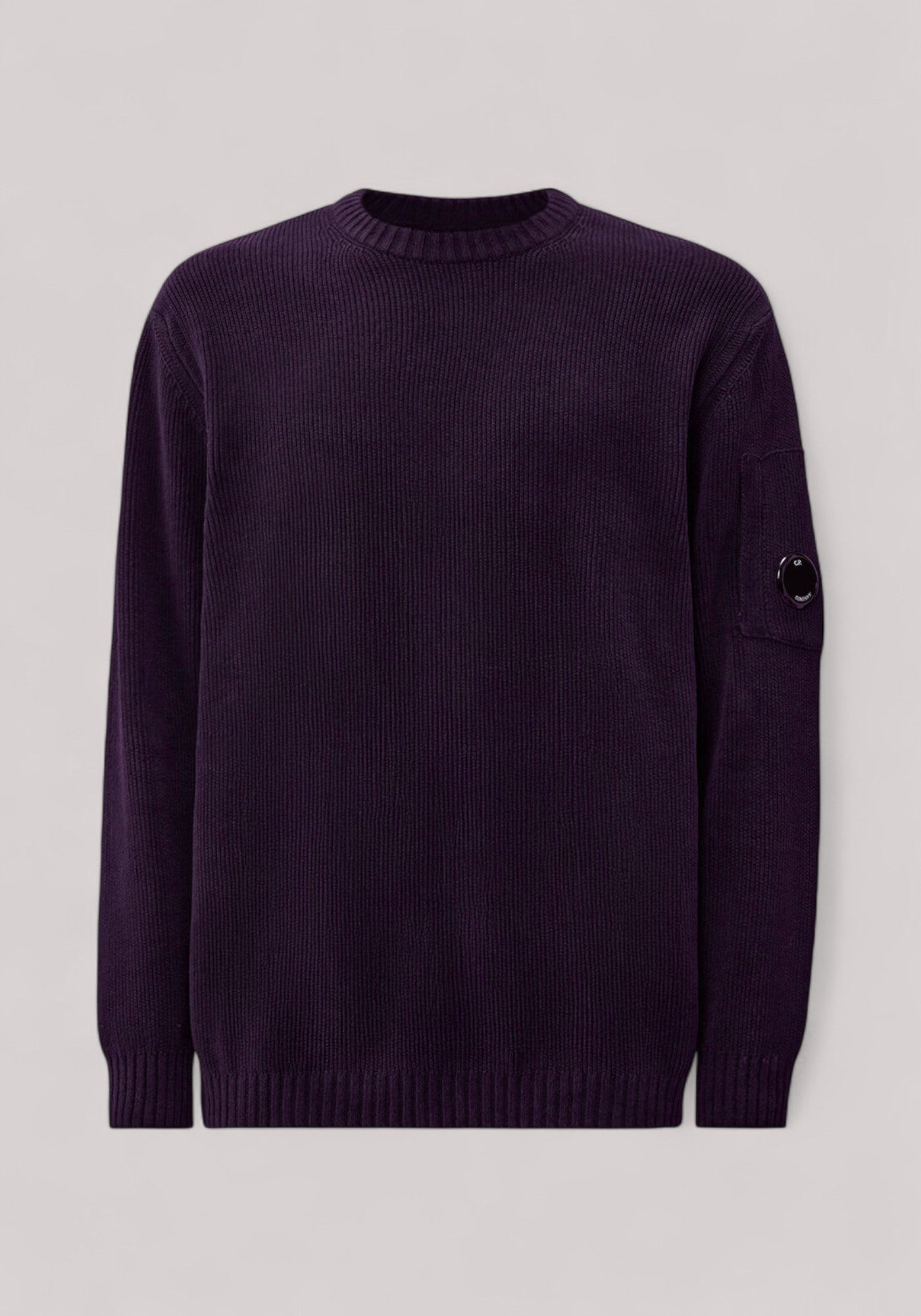 Maglione girocollo realizzato in ciniglia di cotone. Il modello presenta l’iconica Lente di C.P. Company, polsini e fondo a costine. Tinto in capo. Finezza 7. Regular fit.