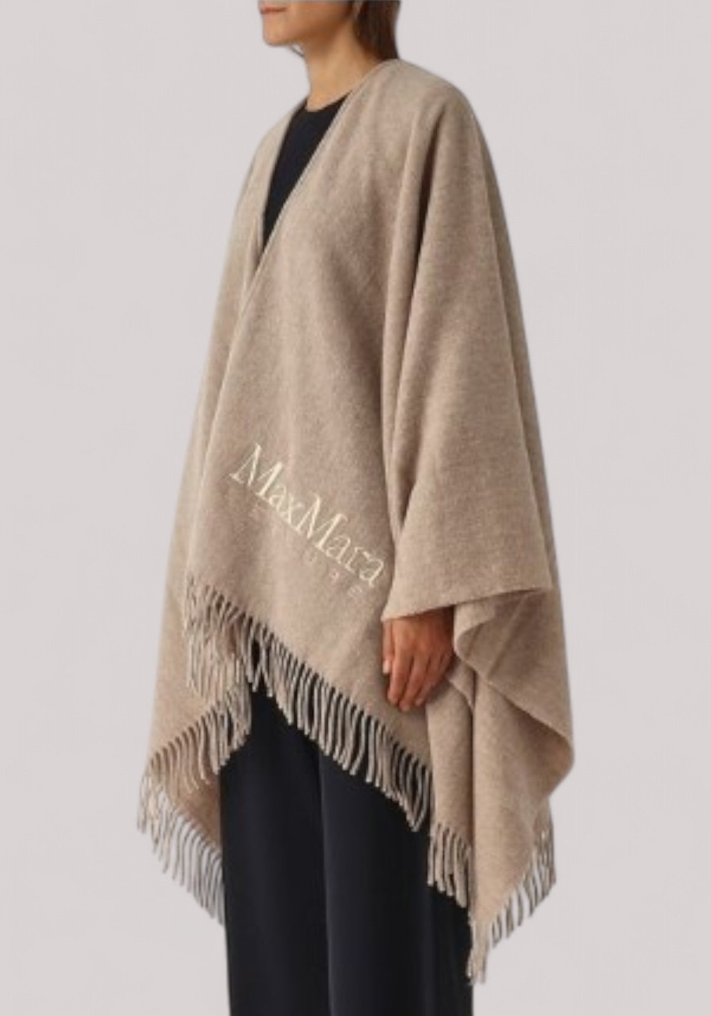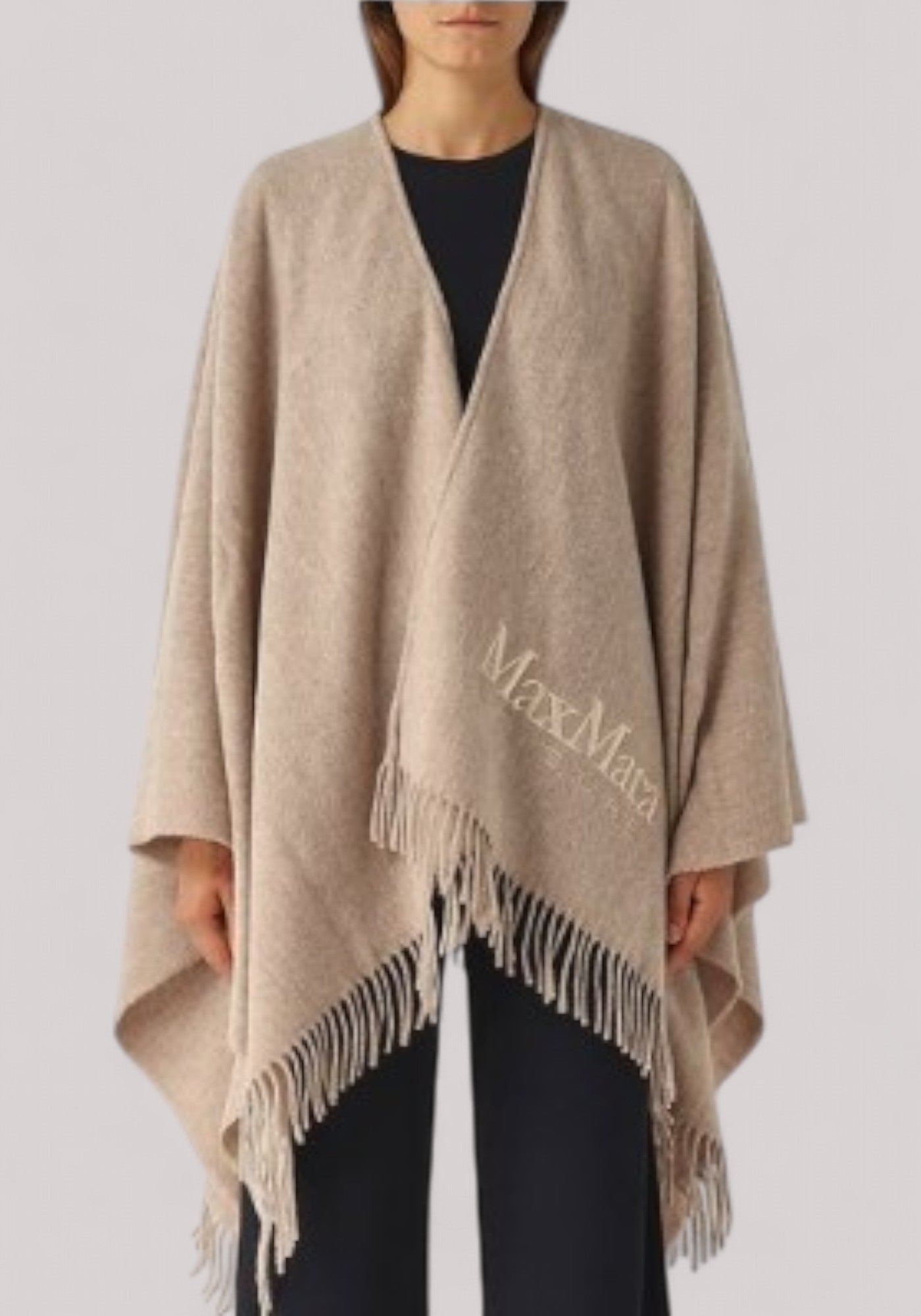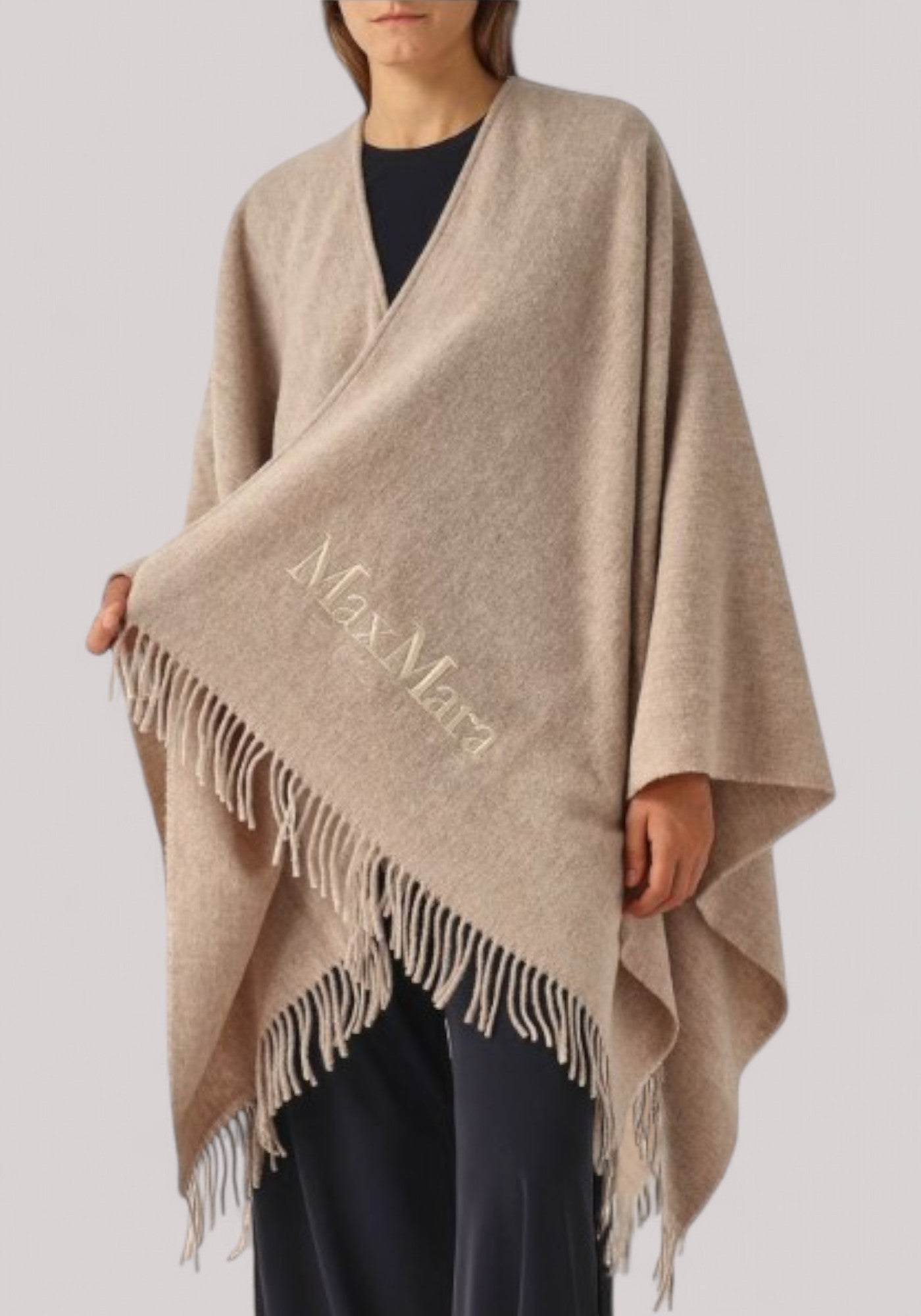 Scaldati con eleganza indossando la mantella Max Mara Leisure Martora in misto lana, caratterizzata da un orlo con frange, logo ricamato ton sur ton e cintura removibile che ti permetterà di enfatizzare la tua silhouette con un solo gesto.